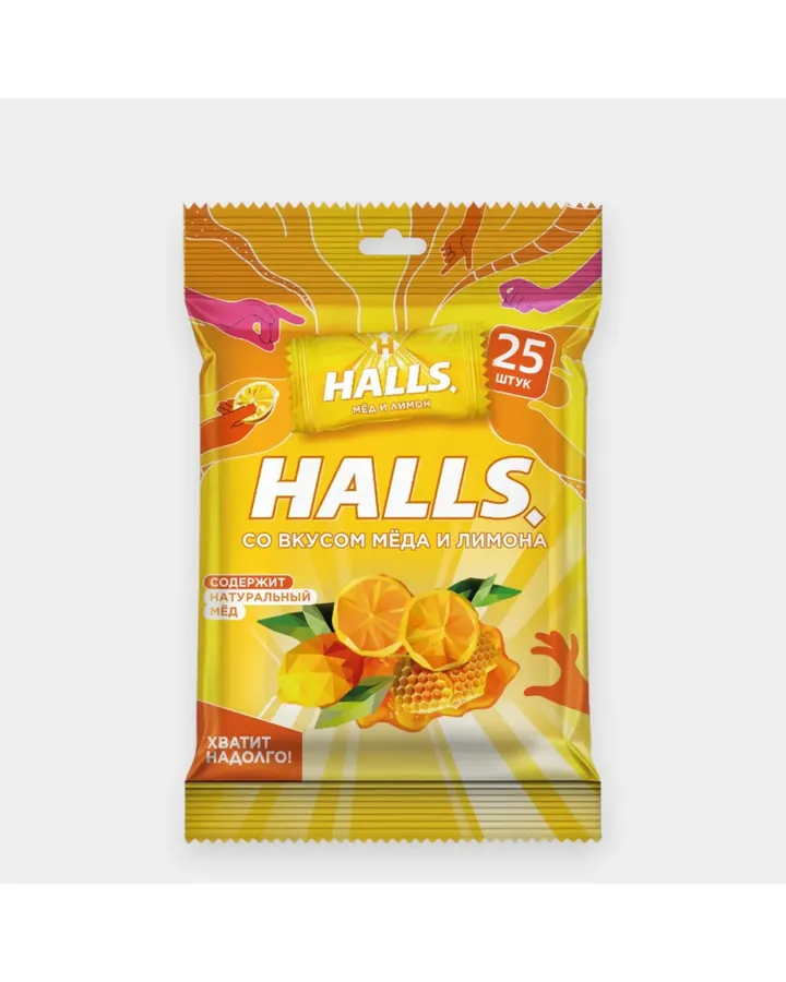 Карамель леденцовая HALLS со вкусом меда и лимона 25г