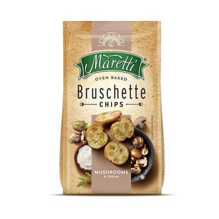 Печеные хлебные ломтики со вкусом "Грибы со сметаной" Maretti. Без ГМО. Масса нетто:70 г.