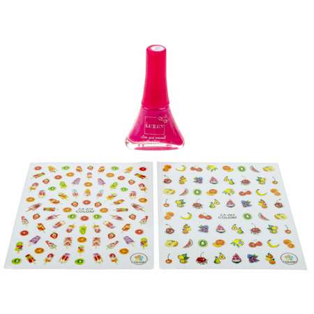 В набор входит лак для ногтей ярко-розового цвета, 2 листа с разными наклейками на них. Лак позволит юной моднице поиграть в салон красоты или парикмахерскую, а также представить себя стилистом или поработать над собственным образом.