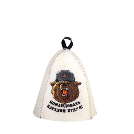 Шапка банная ГлавБаня с принтом Командовать парадом буду я! войлок белый