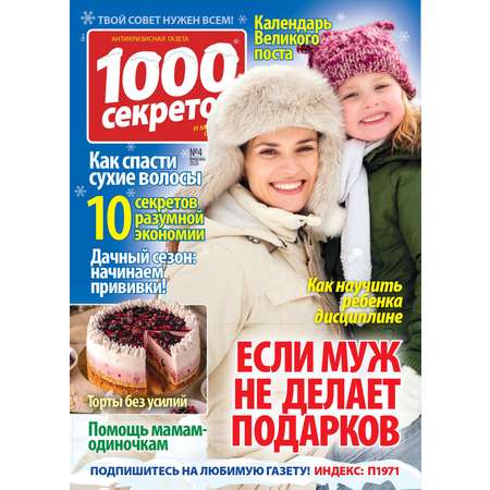 1000 секретов – это энциклопедия домашнего хозяйства с советами на все случаи жизни. На страницах вы найдете материалы об обустройстве квартиры, красоте и стиле, даче, психологии, рукоделии, а также рецепты и многое другое.