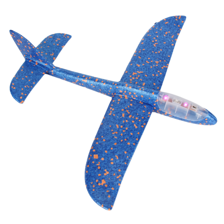 Запустите мечту в небо с этим ярким планером из лёгкого пенопласта! Синий корпус с оранжевыми брызгами создаёт эффект звёздного неба, а прозрачный нос с мигающими огоньками добавляет волшебства каждому полёту. Благодаря аэродинамической форме он легко набирает высоту и плавно планирует, даря минуты настоящего восторга детям и взрослым. Идеален для игр на улице, в парке или даже в просторном помещении — просто запустите рукой и наблюдайте, как он покоряет воздушные потоки. Прочный, безопасный и невероятно зрелищный — отличный подарок для юных авиаторов и любителей приключений.
