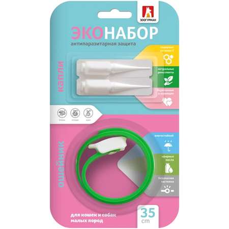 Эконабор Зоогурман антипаразитарный для кошек и собак ошейник и капли 35см