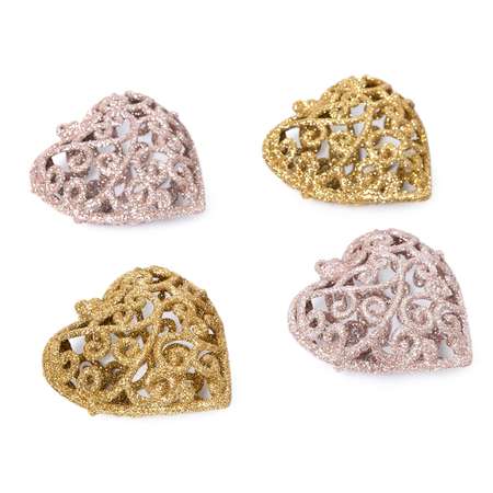 Набор елочных украшений ё Ажурные сердечки 4шт