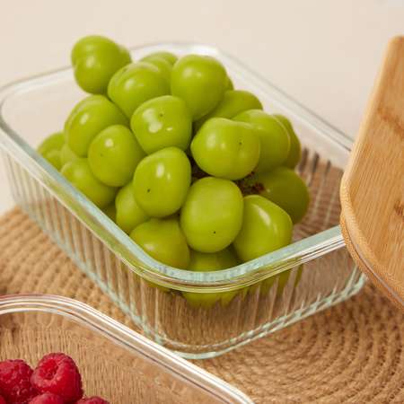 Стеклянный контейнер с бамбуковой крышкой подходит для хранения продуктов, заготовок и остатков пищи. Прозрачное стекло позволяет легко видеть содержимое. Бамбуковые крышки с уплотнителем из пищевого силикона имеют природные антибактериальные свойства, защитят продукты от заветривания.