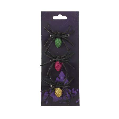 Декоративные пауки 3 шт — эффектное украшение для создания атмосферы праздника и загадочности. Каждый паук выполнен с блестящим корпусом разного цвета, что придаёт набору яркость и оригинальность. Идеально подойдут для декора на Хэллоуин или на тематические вечеринки