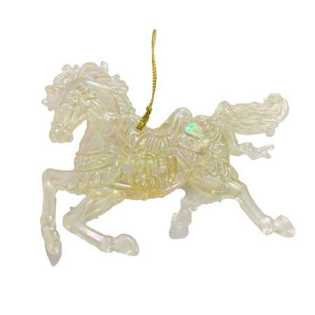 Это ёлочное украшение в форме золотой лошадки с блестящей текстурой станет прекрасным дополнением к вашему новогоднему декору. Его золотистый цвет и изящный дизайн добавят праздничного блеска и создадут атмосферу волшебства.