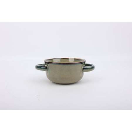 Миска с ручками изготовлена из фарфора, хорошо держит тепло, сохраняя вкус и аромат пищи. Фарфоровая поверхность придает сервировке особую элегантность. Круглая форма с ручками обеспечивает удобство переноски горячего содержимого.