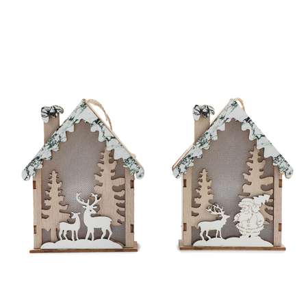 Этот новогодний домик станет прекрасным украшением для вашей ёлки или интерьера. Внутри домика установлен светодиод, который мягко освещает вырезанные элементы, добавляя волшебства.