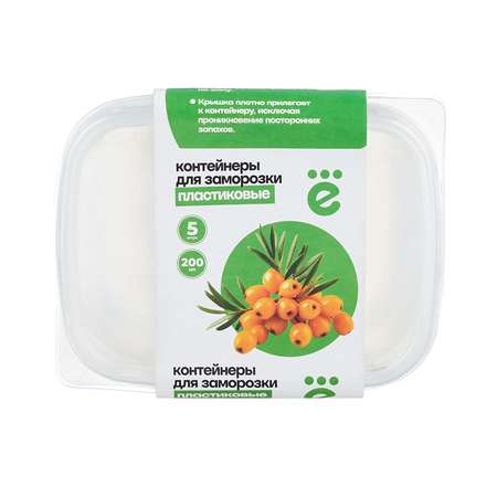 Набор контейнеров 5 шт. пластиковых 200мл с крышками. Емкости отлично подходят для порционного замораживания продуктов в морозильной камере, особенно в сезон заготовок, для повседневного хранения, для перекуса с собой ввиду легкости и компактности материала. Тонкий, но в то же время прочный пластик надежен и прослужит долгие годы. Крышки плотно прилегают к контейнерам, исключая проникновение посторонних запахов и дольше сохраняя свежесть содержимого. Емкости для заморозки выполнены в прозрачном цвете, за счет этого всегда видно, что именно находится внутри, и сокращается время на поиск нужного продукта.