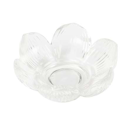 Изящный декоративный аксессуар из прозрачного стекла, выполненный в форме распустившегося цветка. Свет свечи красиво преломляется в гранях, создавая мягкое мерцание и уютную атмосферу.