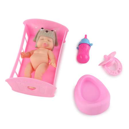 Маленький, милый и совсем как настоящий — этот мини-пупс станет любимым другом вашего ребёнка! В комплекте уютная кроватка и набор аксессуаров: соска, бутылочка и горшок, чтобы малыши могли придумывать свои первые заботливые истории.