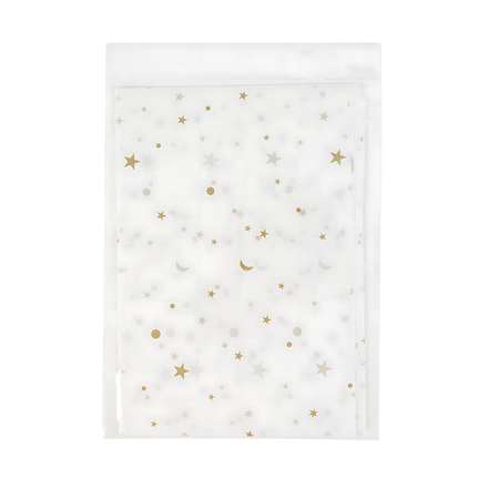 Подарите своим подаркам звездное сияние с нашей бумагой тишью! В наборе 4 листа нежной, полупрозрачной бумаги, украшенной изящным узором из золотых звёзд и лун на белом фоне или геометрическим узором из серых линий зигзагом. Идеально подходит для упаковки подарков на день рождения, Новый год или любой другой праздник. Создайте эффект многослойности и воздушности при упаковке, добавьте деликатности и шарма вашим подаркам. Эта бумага тишью сделает каждый подарок особенным и запоминающимся!