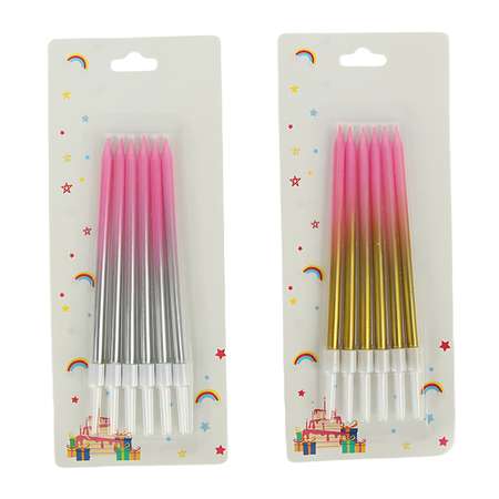 Двуцветные свечи для торта в ассортименте — это стильное и праздничное дополнение к любому именинному десерту, которое превратит момент загадывания желания в настоящий визуальный фейерверк. В наборе представлены два элегантных дизайна: одни свечи плавно переходят от нежного розового к блестящему серебру, другие — от яркого розового к насыщенному золоту, создавая эффект градиента, который выглядит особенно эффектно при свете свечей. Каждая свеча выполнена из качественного пищевого воска, имеет прочную белую основу для надёжной фиксации в торте и острый кончик для удобного втыкания. Упаковка содержит шесть свечей, что идеально подходит для маленького или семейного торжества. Идеальны для детских праздников, романтических вечеров или любого другого события, где важна атмосфера и внимание к деталям — эти свечи добавят вашему торту изысканности и волшебства!