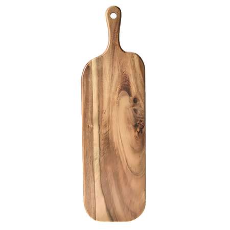 Сервировочная доска станет незаменимой вещью для вашей кухни. Сочетая в себе эстетику и функциональность, она идеально подходит для подачи разнообразных блюд. Универсальность использования позволяет ей быть частью как повседневной трапезы, так и праздничных мероприятий. Изысканный дизайн этой кухонной утвари подчеркнет красоту вашего стола. Изделие обладает прочностью и долговечностью. Форма посуды делает её идеальной для подачи сыров, канапе, фруктов и закусок.Материал: акация