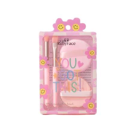 Набор для нанесения макияжа . 2 кисти+2 пуфика