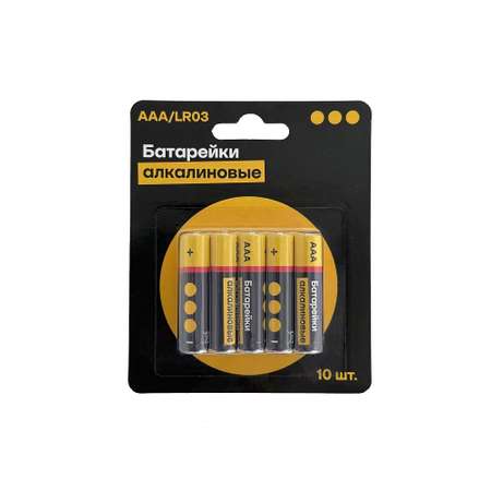Набор батареек, 10 шт Типоразмер: AAA (LR03) Напряжение: 1,5 В Тип химической системы: алкалиновые