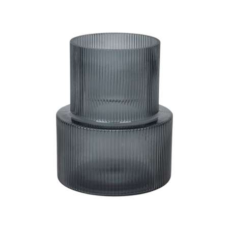 Элегантная и современная ваза, идеально подходящая для создания утонченного интерьера. Изготовлена из прозрачного стекла с вертикальной рифленой текстурой, которая придает изделию объем и игру света. Дизайн вазы — это сочетание двух цилиндров разного диаметра, что создает интересный визуальный эффект и подчеркивает ее минималистичный стиль. Доступна в белом и черном варианте.Такая ваза станет прекрасным акцентом на полке, столе или комоде, добавляя пространству легкости и свежести. Она подойдет как для хранения цветов, так и для использования в качестве самостоятельного декоративного элемента.