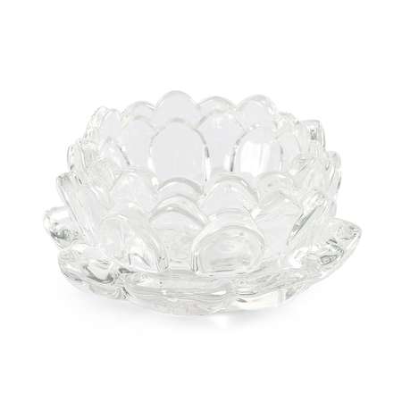 Изящный стеклянный аксессуар в форме распустившегося цветка лотоса. Прозрачное стекло красиво преломляет свет свечи, создавая мягкое мерцание и уютную атмосферу в любом интерьере.