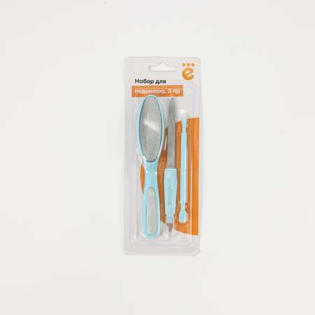 Универсальный набор инструментов для педикюра: кусачки, пилочка для ногтей и палочка для отодвигания кутикулы.