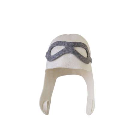 Модельная шапка для бани "Пилот"сделана в уникальной форме из белого войлока и украшеа аппликацией в виде очков.