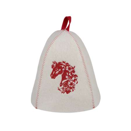 Шапка банная ГлавБаня Красный конь с вышивкой войлок белый