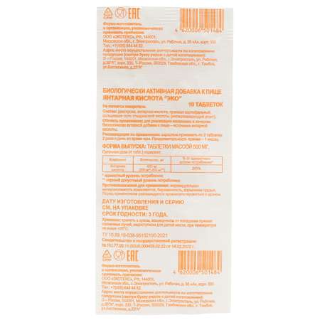 Янтарная кислота . БАД таблетки 0.5г №10