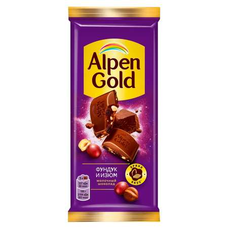 Шоколад Alpen Gold молочный фундук изюм 80г