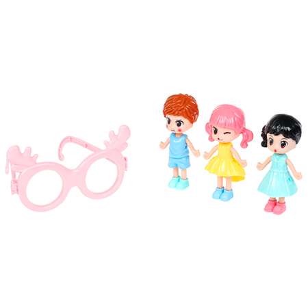 Яркий мир дружбы и приключений для юных любителей ролевых игр! В комплекте три милые фигурки: рыжеволосый мальчик в голубых шортах и сандалиях, девочка в жёлтом платье с розовыми волосами и девочка в голубом платье с чёрными косичками — все с выразительными глазами и забавными позами. Дополняет набор стильные розовые очки в форме бабочек, чтобы устраивать модные показы или фантастические истории.
