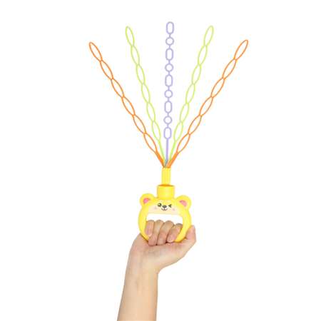 Мыльные пузыри с 5 ветками — яркая и увлекательная игрушка для детей, которая превращает обычное пускание пузырей в настоящее шоу. Устройство оснащено пятью гибкими пластиковыми ветвями разного цвета (оранжевые, зелёные и фиолетовая), которые выпускаются при нажатии на ручку. Эргономичная жёлтая ручка в виде мордочки медвежонка удобно ложится в детскую ладонь, а встроенный резервуар для мыльного раствора обеспечивает длительное использование без частых дозаправок. Идеально подходит для игр на свежем воздухе, праздников или просто весёлого времяпрепровождения — дарит радость, развивает моторику и воображение ребёнка.