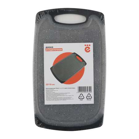 Разделочная доска Stone 25х15см - это незаменимый помощник на вашей кухне. Изготовлена из высококачественного полипропилена. Прочный материал не трескается и не раскалывается, обеспечивая гладкую режущую поверхность, которая не затупляет ножи. Разделочная доска оснащена глубокой канавкой для сока, которая предотвращает его стекание на столешницу. Это делает процесс нарезки более гигиеничным и удобным. Также стоит отметить, что разделочная доска имеет нескользящую поверхность и может быть подвешена на крючок. Это обеспечивает безопасность использования и удобство хранения.