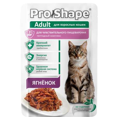 Корм консервированный полнорационный ProShape для взрослых кошек с чувствительным пищеварением, с ягненком в соусе 75г.