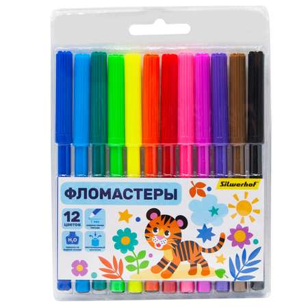Набор фломастеров предназначен для маленьких и любознательных малышей. Он включает в себя 12 уникальных разноцветных фломастера. Каждый фломастер оснащен вентилируемым колпачком. Отстирываются с большинства поверхностей.