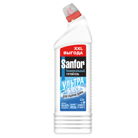 Моющий гель для уборки 10 в 1 от Sanfor – универсальное чистящее средство для эффективной и быстрой очистки различных поверхностей в вашем доме. Идеально подходит для ванной, душевой кабины, в том числе унитаза, раковины, плитки и напольных покрытий, а также поверхностей на кухне. Очиститель 1л имеет дезинфицирующее действие, благодаря которому удаляются микробы и неприятные запахи, загрязнения и жир, быстро придавая поверхности блеск и белизну. Этот концентрированный жидкий гель имеет антибактериальные свойства, дезинфицируя и уничтожая микробы, обеспечивая максимальную гигиену. Поставляется в литровой бутылке, что делает его экономичным в использовании. Содержит хлор. Очищает от разводов и не оставляет следов на поверхности, устраняя серый налет, грязь, плесень и грибок. Концентрат можно использовать не только для мытья туалета и кухни, но и других помещений в доме. Он подходит для сантехники, слива, водостоков и других поверхностей. Погрузитесь в атмосферу свежести, который оставляет Санфор. Ваш дом будет наполнен приятным запахом, а вы сможете насладиться чистотой, которое обеспечивает этот продукт из нашей линейки бытовой химии. Благодаря загущенной формуле, товар расходуется экономично, равномерно распределяется и не стекает с наклонных поверхностей. Флакон оснащен антискользящей поверхностью, его удобно удерживать в руке, есть блокиратор крышки для защиты от детей. Уважаемые покупатели! Обращаем Ваше внимание на возможное изменение упаковки.