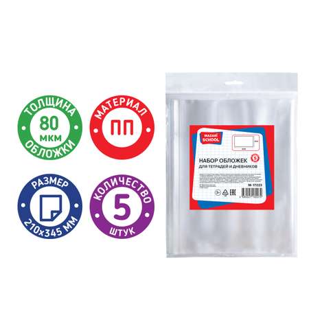 Комплект обложек для тетрадей и дневника - 5 штук в упаковке. Плотностью 80 микрон.