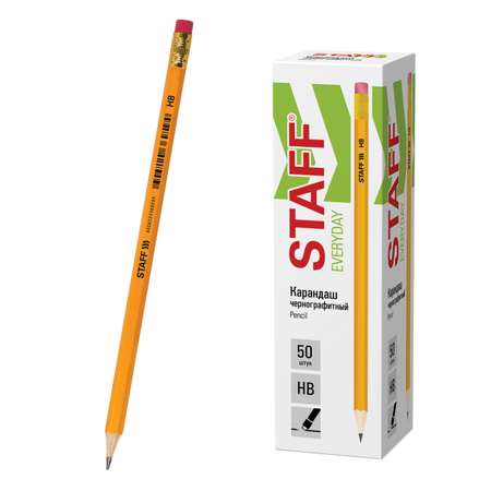 Карандаш чернографитный STAFF EVERYDAY - первый помощник для выполнения проектно-конструкторских работ, позволяет сделать легкий набросок, быстрый рисунок или нарисовать полноценную картину. Карандаш изготовлен из прочного пластика. Ластик, расположенный на корпусе, обеспечивает мягкое и чистое стирание. Благодаря шестигранному сечению корпуса карандаш удобен в работе и менее подвержен скатыванию с поверхности стола. Корпус длиной 176 мм легко точится и не крошится, оставляя равномерную стружку. Грифель карандаша обладает средней степенью твердости – HB. Корпус выкрашен в классический жёлтый цвет. Поставляется заточенным. Это товар эконом-сегмента, поэтому он отличается привлекательной ценой. Товар обладает базовым набором характеристик и простой упаковкой, при этом полностью соответствует основным требованиям потребителей. Приобретайте чернографитный карандаш STAFF "EVERYDAY" по выгодной цене! Убедитесь в высоком качестве и комфорте его использования.