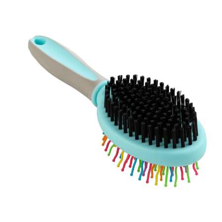 Двусторонняя щетка с ручкой. Обеспечивает нежный уход за верхним и базовым слоем шерсти. С нейлоновой щетиной с одной стороны и металлической щетиной с наконечниками – с другой. Ключевые особенности: Щетка 2-в-1 расчесывает и разглаживает шерсть. Убирает колтуны, спутывания и выпавшую шерсть. Имеет 2 стороны: с одной стороны - металлические зубчики, с другой - щетина. Прочные металлические зубчики (жесткая сторона) для распутывания, удаления загрязнений и массажа кожи питомца. Щетина (мягкая сторона) разглаживает и придает блеск покровной шерсти.