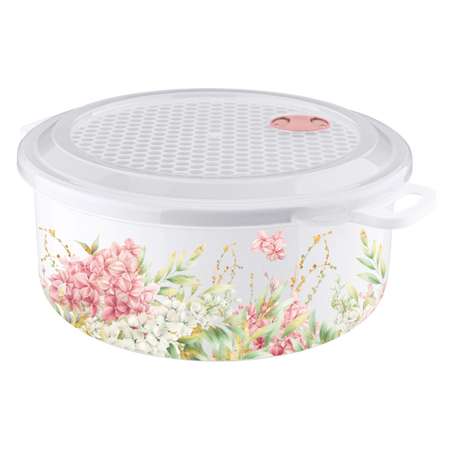 Емкость для холодильника и микроволновой печи задекорирована с помощью технологии IML, при которой аппликация вплавляется в изделие на стадии литья. Изделие сочетает в себе традиционную форму и современный дизайн. Емкость многофункциональна. В ней можно разогревать, замораживать, хранить и подавать на стол различные продукты, в том числе супы. Разогревать пищу можно, не снимая крышки (при открытом клапане), что предохраняет внутреннюю поверхность микроволновой печи от загрязнения. Декор надежно держится на изделиях при использовании, не смывается при контакте с водой.