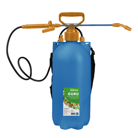 Опрыскиватель RADIVAS GURU, 8л, помповый, синий. Устойчивая конструкция благодаря размерам и геометрии дна. Комплектуется ремнем, пневматическим насосом, гибким шлангом и инструкцией.