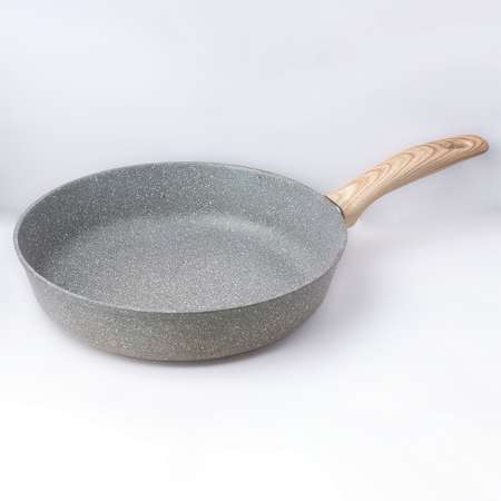 Сковорода 22 см. Литой алюминий обеспечивает равномерный нагрев по всей поверхности, что важно для сохранения вкуса и сочности блюд. Антипригарное покрытие защищает еду от пригорания, облегчает процесс мытья. Корпус устойчив к деформациям, не гнётся и не коробится при перепадах температуры. Несъёмная ручка крепко зафиксирована, не нагревается даже при длительном использовании, комфортно ложится в руку. Оттенок серого мрамора хорошо смотрится в интерьере и сочетается с посудой.