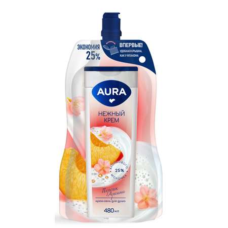 Гель-крем AURA для душа Персик и Арган 480 мл